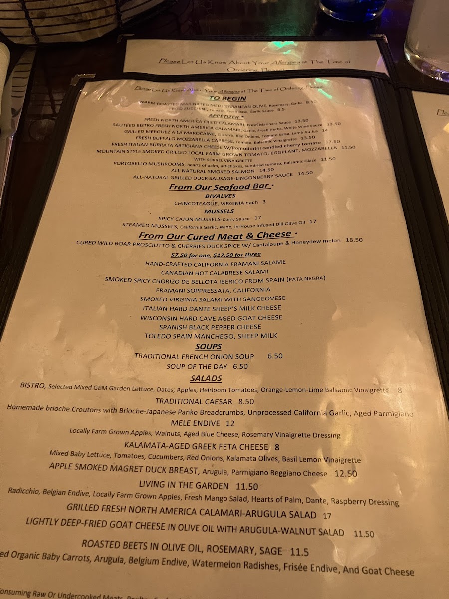 Mache, Radicchio, Belgian Endive, Locally Farm Grown Apples, Fresh Mango Salad, Hearts of Palm, Dante, Raspberry Dressing
